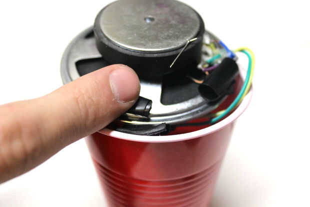 Todo lo que queda por hacer es conectar nuestra hembra cables a los encabezados de hombres, seguros el altavoz a la Copa y finalmente roca hacia fuera a algunos malos golpes!