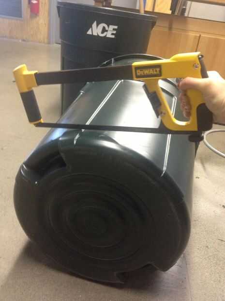 Usando una sierra para metales primero corta los mangos cada uno puede. Luego corte la parte inferior de la lata poniendo la lata en el suelo.