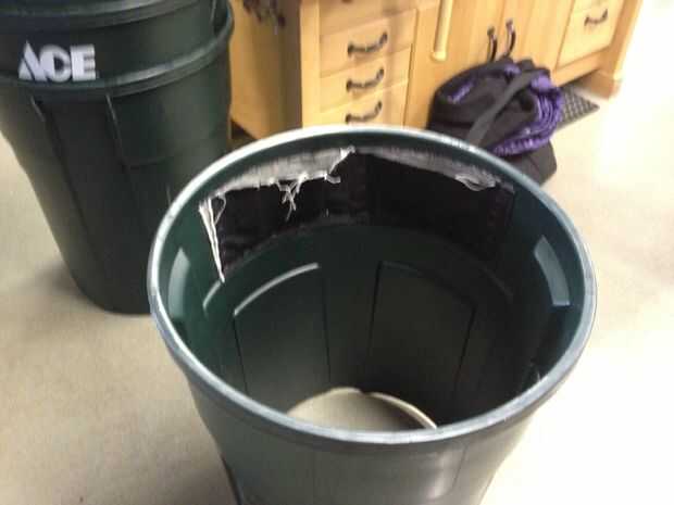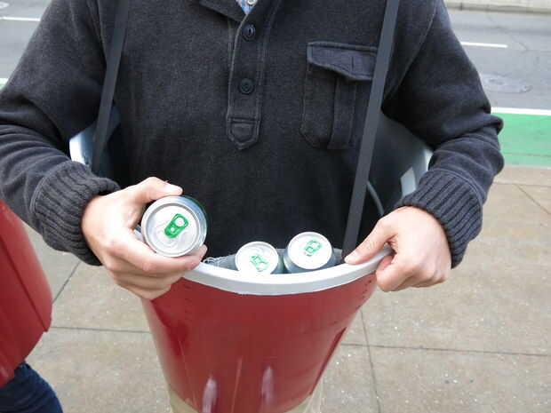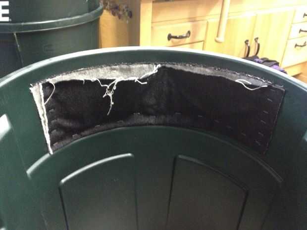 1. Comprar un galón 30 Rubbermade basura, pintura plástica de color roja y blanca2. cortar la parte inferior3. cortar mangos4. cortar orificios para los brazos5. pintura exterior roja6. Pinte el borde y el interior blanco