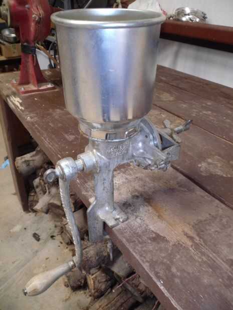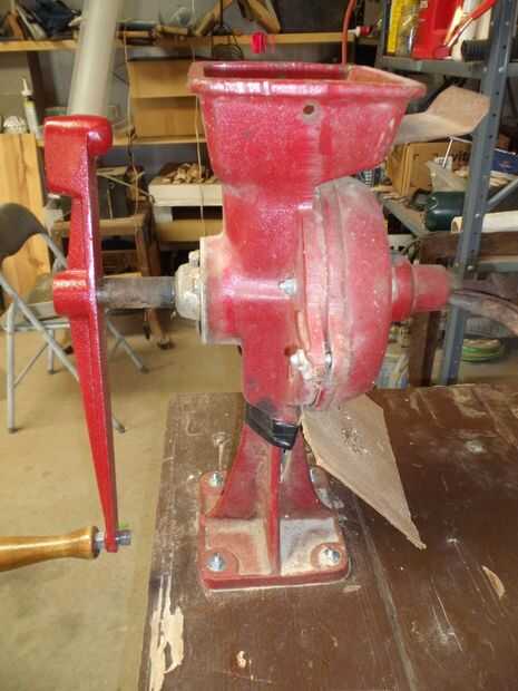 El método más fácil para preparar el grano en casa es utilizar un molinillo o molino. Arriba son fotos de mis molinos. El rojo uno es un molino que he tenido durante muchos años. Es pesado, de hierro fundido y en un tiempo lo tuve en un remolque con mi cortadora de troncos y corrió con un motor de gas de cinco caballos de fuerza. Es el mismo como el molino de alta velocidad en catálogo de Lehman. Quisiera comprar maíz en el elevador de grano y moler un camión entero a la vez para mi ganado. Corrí muchos cargamentos de maíz sin cáscara a través de este molino y rebabas, rodamientos, etc. están aún en buena forma. Ahora tengo montado en un banco y substituido la polea con una manivela, puesto que sólo hacen harina para nuestro uso y no alimentar al ganado ya. Dirijo el grano crudo a través de este molino primero y luego utilizar el otro – un molino Corona, para terminar en la harina. Los molinos más caros con rebabas de piedra son capaces de reducir el grano a una harina más fina textura que la Corona, pero tiene que ver con lo que tengo.