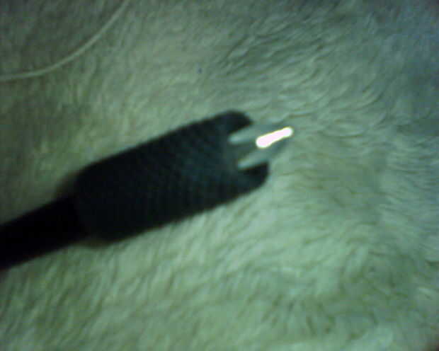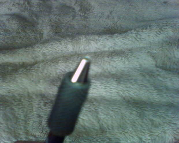 Empuje la empuñadura hacia la pluma, ligeramente, por lo que está cubriendo la mitad de la broca.