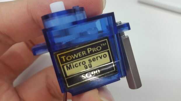 Conecte el Servo Motor SG-90 y la tuerca hexagonal.