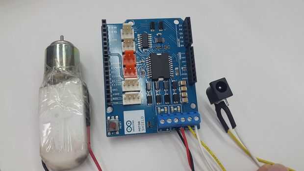 Motor DC y DC jack conectan Arduino Motor Shield ~