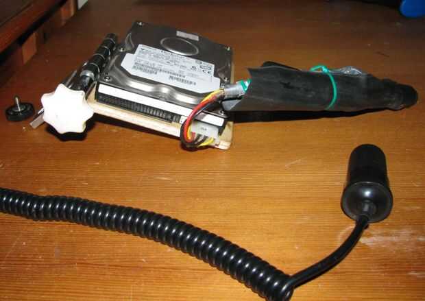 La cámara está montada sobre una bisagra con tornillo de fijación. La otra parte de la bisagra monta un disco duro.