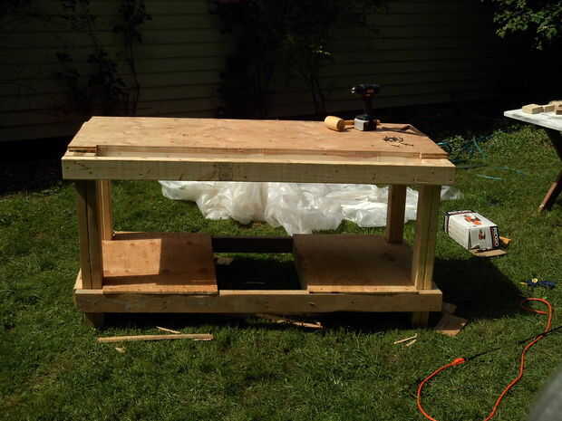 Hola y Bienvenidos a otra mesa de trabajo instructable. Hice este trabajo para mi particular necesita una muy robusta mesa de trabajo con suficiente espacio para almacenar todo lo que necesito para terminar un proyecto de la Sierra de caladora, con espacio de almacenamiento. Para este proyecto, hice uso de un montón de 2by4s reclamado para el marco. Como tal, no tengo una lista completa de lo que solía hacerlo. A continuación son mis estimaciones de materiales: