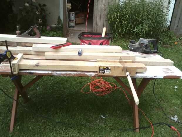 Ahora, para esto, yo recomiendo usar una caja de ingletes y una buena Cruz corta la sierra. Puede medir los cortes, o configurar una valla hacer lo mismo que el último corte. O ser paranoico como yo y medir los cortes durante el uso de la guía y al mismo tiempo comprobar cada pata de la llanura. Vas a tener que cortar ocho 32" 2by4s. Luego, pegar hasta dos 2by4s de cada una de las piernas.