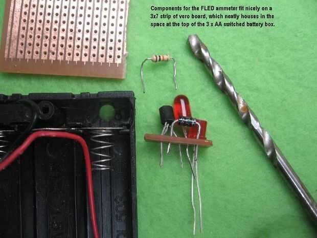 Nota - FLEDs toleran un amplia del voltaje de fuente, pero si un rojo LED se utiliza por supuesto necesita un resistor de caída adecuado, como cuando ejecuta desde 3 x AA que va impulsado más. LED blanco (que puede ejecutarse directamente desde 3-4 voltios) eventualmente se utilizaron en el circuito final de todos modos, como estos se encontraron para dar efectos de flash/intensidad más sorprendentes que un rojo y que no es necesario un gotero extra R.