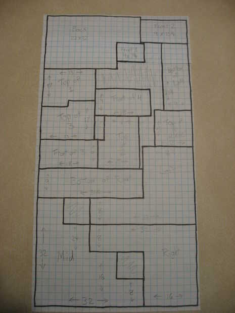Me doy cuenta que no puede leer mis marcas de lápiz en esta pic, pero se puede ver dónde colocar cada pieza. Puede puede leer las marcas en el corte de la versiones mejor. Para una mejor visualización de las piezas revisa el siguiente paso: corte y vistazo a la foto 1 y 2.