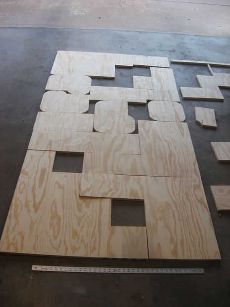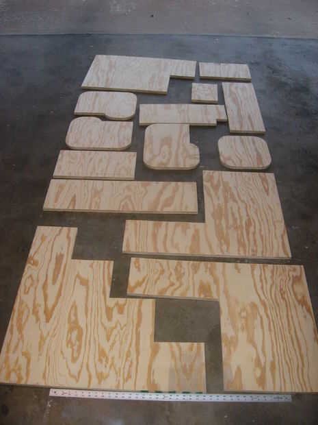 Tomar un lápiz y marcar la madera contrachapada (todas las piezas) sobre la tabla. Asegúrese de que todos caben (no olvidar que la hoja de la sierra se saca 1/8 de pulgada, así que deja la habitación! Utilice el papel cuadriculado. Luego cortar cada pieza y marca en un borde o dentro de que no se mostrará qué pieza son (es decir: de 1 o inferior de la R). Hay un poco de espacio adicional en la hoja de madera contrachapada pero trata realmente difícil no cometer un error, otra cosa que derrota el propósito de hacer esto fuera de una tabla. Se puede ver en el grano de la Junta en la foto 1 que se corta de un 4 x 8 pieza de madera contrachapada. En foto 2 se pueden verles algunas espaciadas.