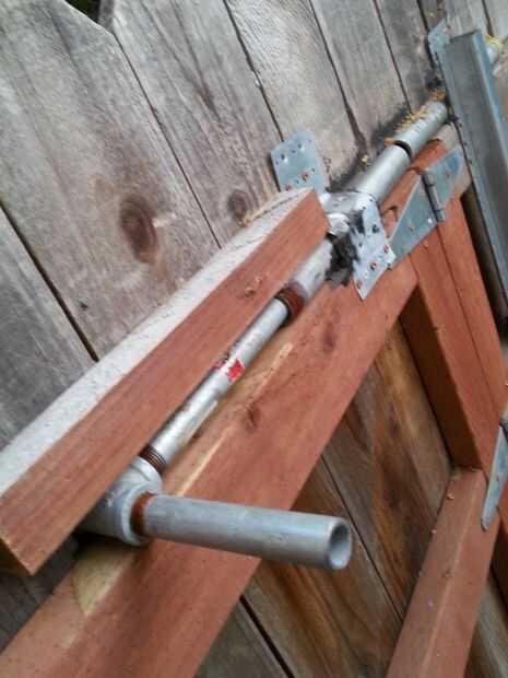 Mis padres querían una puerta que no toque la casa y que la gardner puede abrir desde el exterior y el interior como que el hombre que contrató para ello hicieron un trabajo barato. Así que después de un mes de pensar, esto es lo que me ocurrió con