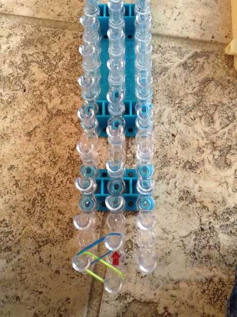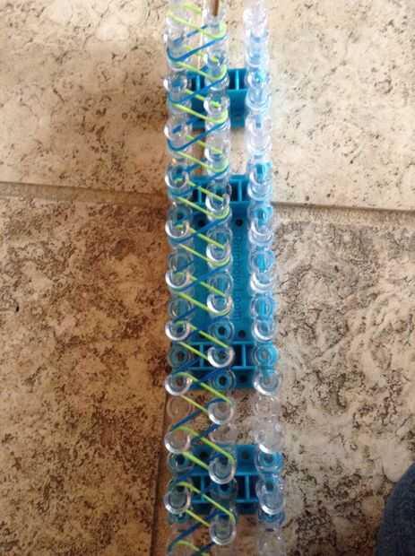 Espero que funcione para usted!Paso 1: Paso 1: reunir su equipoSe necesita:-un telar-12 bandas azul-12 bandas verdes-12 bandas púrpura-12 bandas blancas-1 banda acabado blanco-un clip de "s" o "c"Paso 2: Paso 2: colocar las bandasAsegú