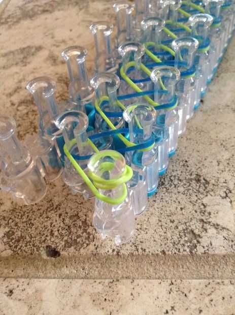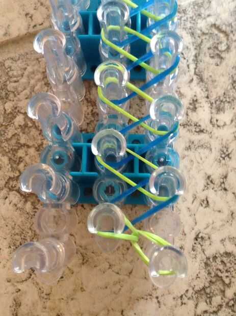Espero que funcione para usted!Paso 1: Paso 1: reunir su equipoSe necesita:-un telar-12 bandas azul-12 bandas verdes-12 bandas púrpura-12 bandas blancas-1 banda acabado blanco-un clip de "s" o "c"Paso 2: Paso 2: colocar las bandasAsegú