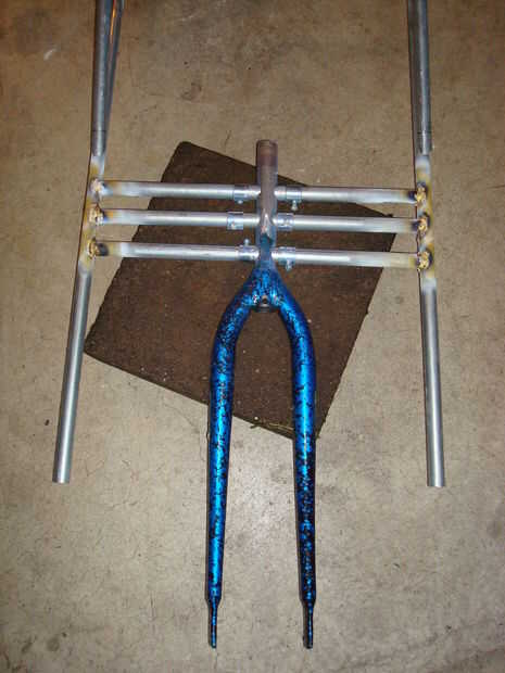 Al principio decidí me perfore un par de orificios en el vástago de la horquilla y poner dos soportes de horquilla a través del orificio. Entonces yo sería soldar los soportes de la horquilla la horquilla y el trailer. Después de la mayor consideración, sin embargo, pensé que tres soporta era mejor que dos, por lo que es cómo terminé con tres conjuntos de agujeros.
