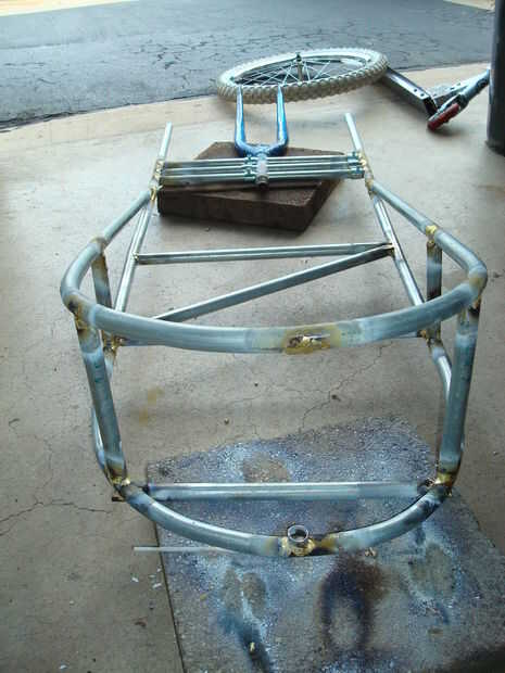 Nota: Había planeado originalmente sobre el uso de tres soportes verticales en la parte delantera del remolque, pero se quitó después de que se me ocurrió una mejor solución para conectar el remolque a la moto. Se puede ver el apoyo que fue quitado en las fotos.