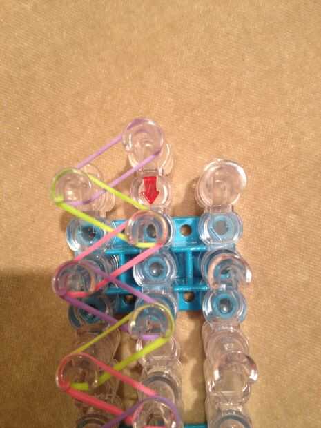 yaaPaso 1: Vas a necesitar:telar del arco irisGanchoBandasClip CPaso 2: Agarrar una banda y empieza de la clavija central en la clavija correcta, luego volver a la clavija media. Repita el proceso hasta que usted alcanza la parte superior.Paso 3:Dale