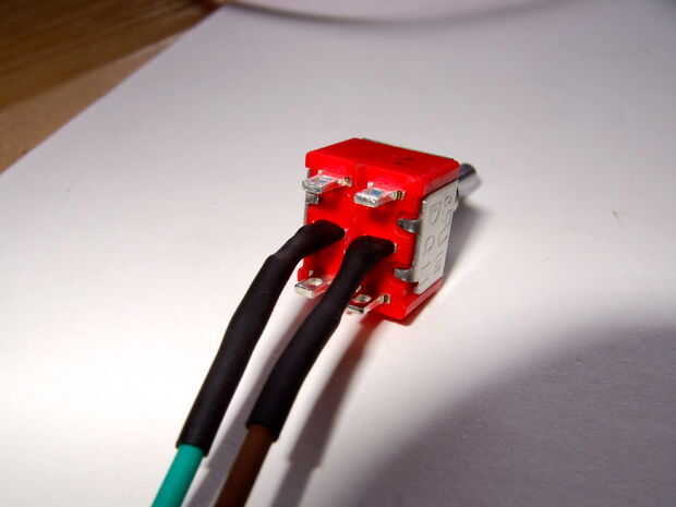 bajar un pequeño algunos cables y switch. .. soldar los cables a los bornes del interruptor...