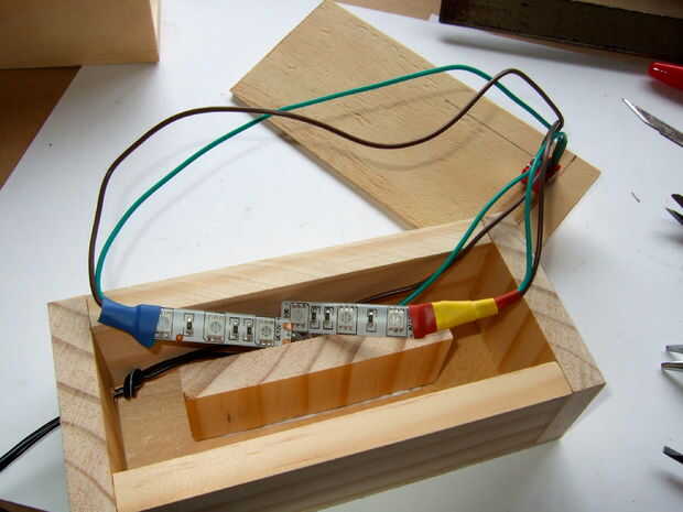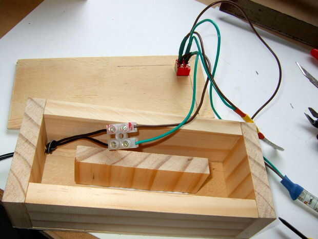 en el centro de la caja, coloque un pedazo pequeño de madera. llevará a cabo los LEDs