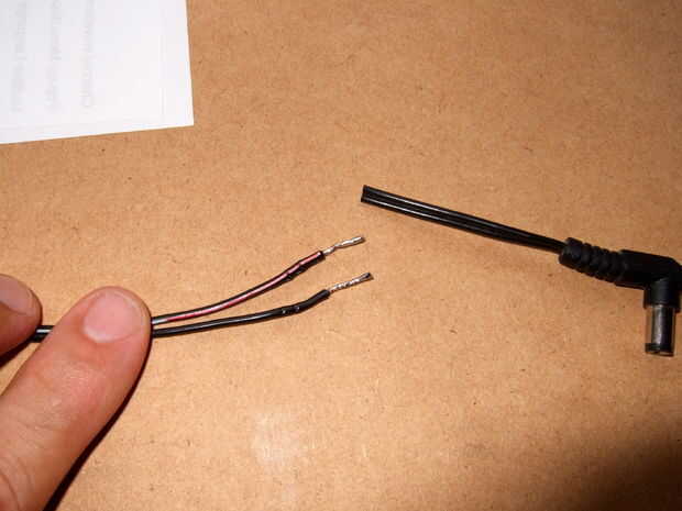 cortar la punta de la cuerda del adaptador y compruebe si los cables están marcados + o _ pos o neg.