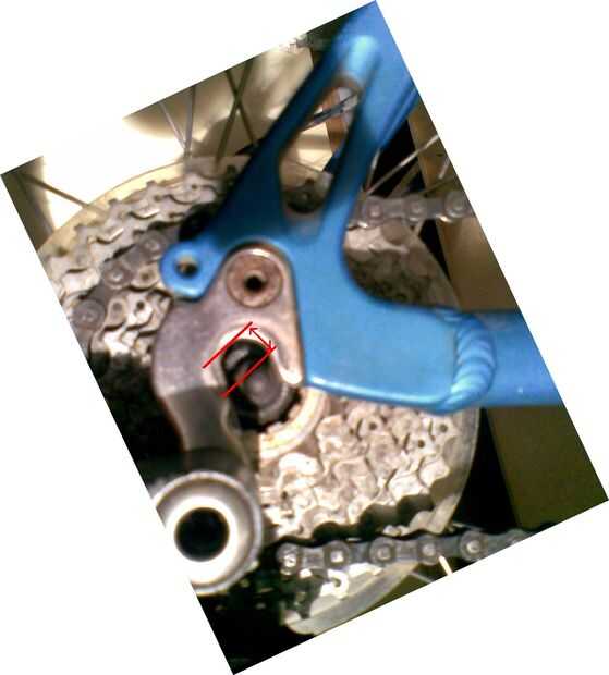 Empuje la rueda hacia atrás en su hueco de árbol y encontrará que el cadena obtiene cierta tensión en él mientras que el árbol no alcanza absolutamente su posición habitual. Hasta la liberación rápida firmemente.