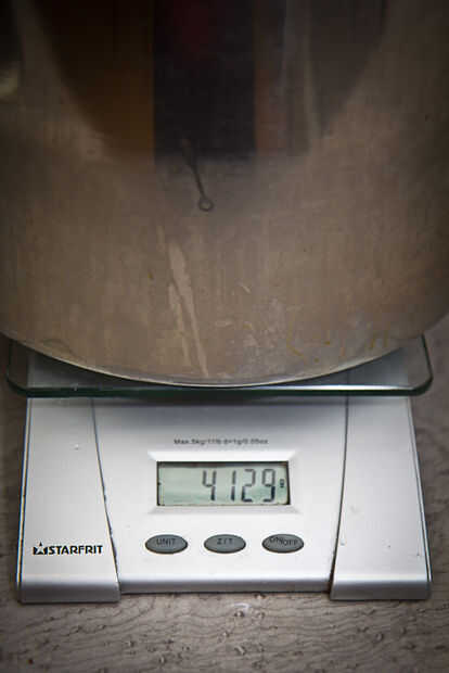 - Coloque el cubo de la salmuera en la balanza y lo tare.