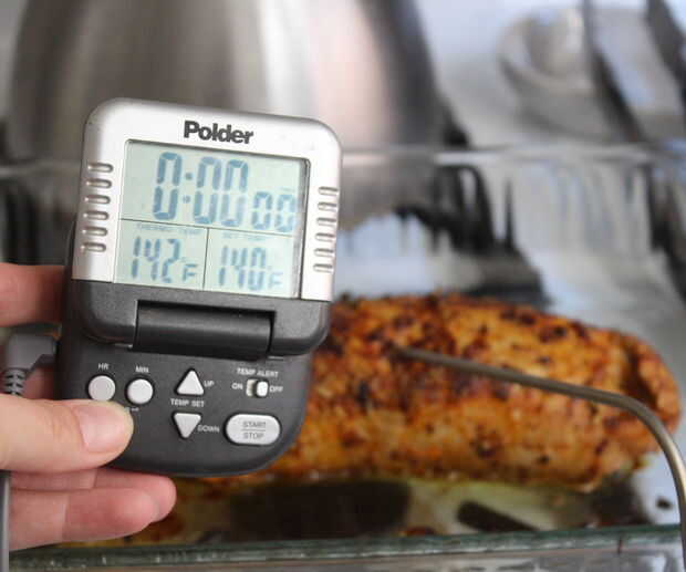 Nota: Cocinar a 140 F dará lugar a cerdo ligeramente rosada. Este es seguro y muy bien! Si realmente te molesta, a 145-150 y luego jale hacia afuera y descansar.