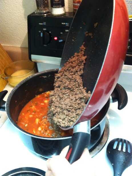 Paso 9: Escurrir la carne y añadir a la salsa