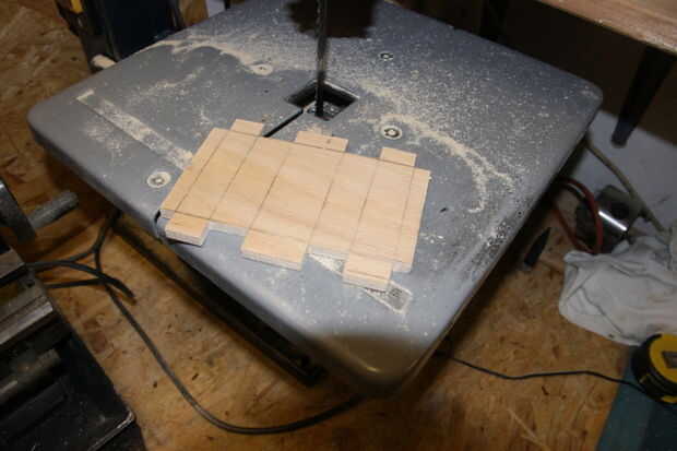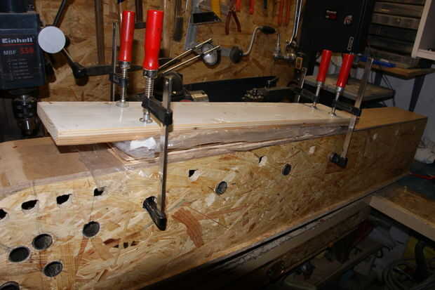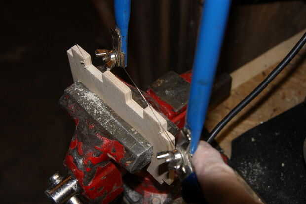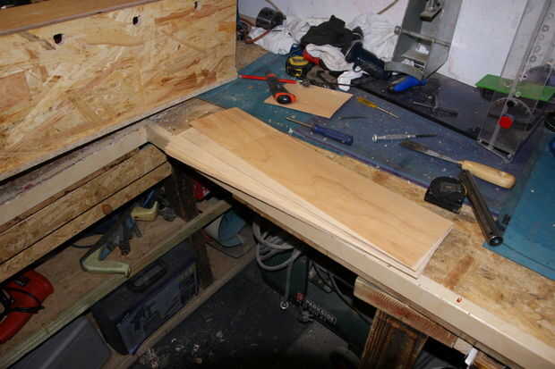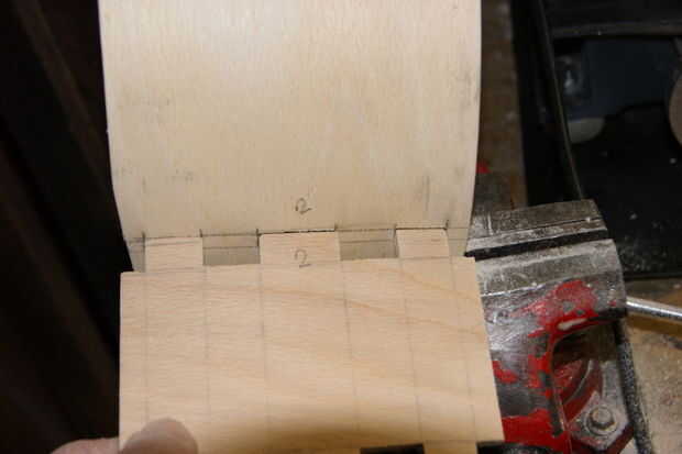 necesitaba también elementos rectos y elementos de conexión, así que tomó tres carillas y les pegan. También era necesario lijar después de pegado. Entonces yo cortar juntas con sierra eléctrica pequeña y vieja Sierra de mano débil de moda. Pegar las partes fue un éxito.