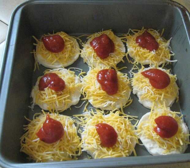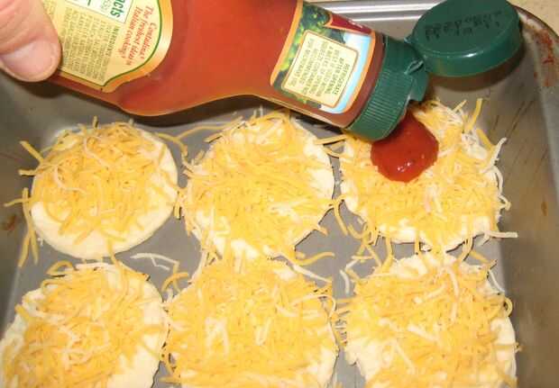 Algunas personas le dirá que agregue primero la salsa, pero estas son Chicago estilo Mini Pizzas, así que la salsa va en la parte superior del queso.