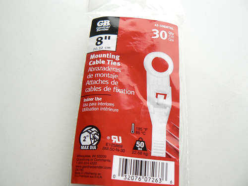 Te necesita: Bridas de montaje (menos de 4 dólares en Lowes). Los lazos de un corte lateral (o tijeras fuertes) para cortar el plástico sobrante de los cables.