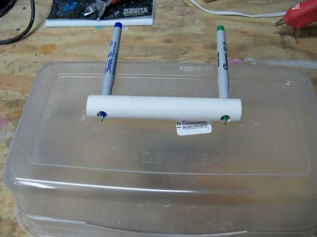 contenedores se suspenden entre las vigas del piso a través de barras de madera de 1 "x 2" y soportes de metal.1) cortar las barras de madera 17,5" de largo.2) doblar el soporte de una "Z" asegurándose de que uno de los agujeros s