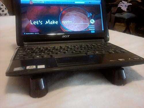 Colocar el portátil en la cama y otros lugares que bloquear los respiraderos de aire es una invitación abierta a sobrecalentamiento. Una solución rápida es colocar una cuña de doorstop o dos bajo su ordenador portátil que le permitirá llegar a los respiraderos de aire.