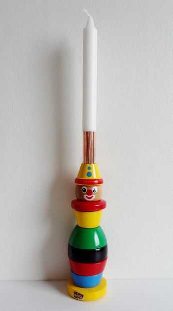 Armar el juguete/candelabro. Decidí no pegar el tubo de modo que todavía puede ser utilizado como juguete, así y todo el mundo es feliz. Pongo alguna cinta en el extremo del tubo para encajar perfectamente en el agujero.