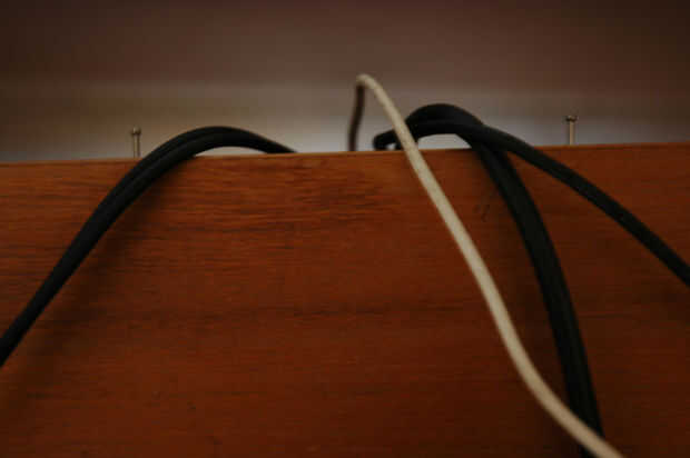 todo el mundo tiene una mesa de trabajo con un montón de cables corriendo detrás de él.tuve un problema con todos mis cables de siempre estar en la tierra acaparando polvo.así que con algunos plástico keytags/ziptie hice un managmant de cable fácil.n