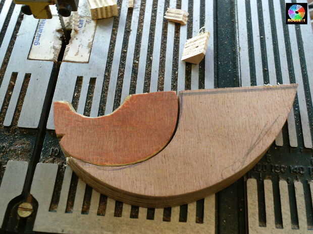 Esto fue seguido por cortar un semicírculo offset desde el primer corte para crear una cámara.