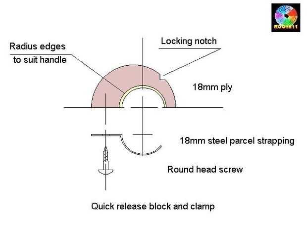 El diseño fue realizado prácticamente en la sierra, corté un pedazo de madera contrachapada de 18 m m hacia fuera para caber alrededor de la parte estrecha del jefe principal de tornillo, radiusing ambos lados para encajar cómodamente alrededor del eje.