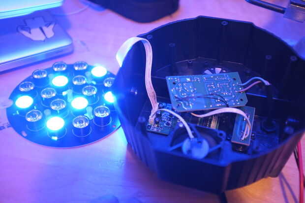 Como un ingeniero que trabaja principalmente en iluminación LED, siempre estoy recibiendo las muestras de nuevos productos en un montón de distintos precios y con calidad muy diferente. Contra mi mejor juicio tomé una oportunidad en algunos partidos de sub-$40 18-vatio RGB LED de Amazon hace unas semanas para tratar de encontrar un accesorio de bajo costo que todavía tenía DMX de entrada y tuvo una regular 120V enchufe.