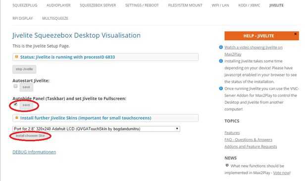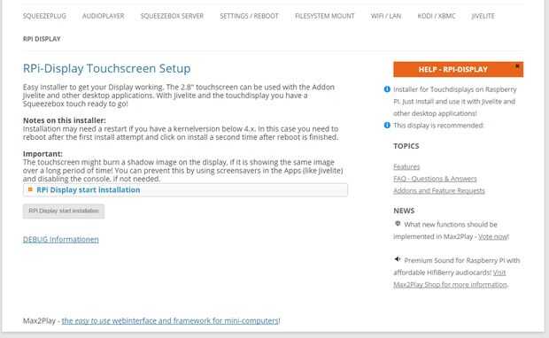 Paso 4: Usar Max2Play extensiones a configurar e instalar la pantalla y la visualización