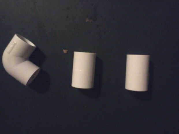 uniones de pvc de 2 1/2 pulgadas 1 - codo de 90° de pvc de 1/2 pulgada 1 - longitud de la cuerda o cable Opcional - ganchos o los ojos dependiendo de tu configuración.