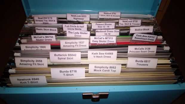 Una vez tengo mi patrón de trazado, y en una carpeta zip, yo puedo ahora agregarlo a mi archivo de caja. Añadir fichas impresas a cada carpeta de la suspensión, dando el código patrón, marca y descripción breve; Si no tienes una impresora, puede de la mano del curso escribir estos! Intentar reunir todos mis patrones de falda, luego las tapas, luego vestidos etc, solo para la facilidad de encontrar lo que quiero.