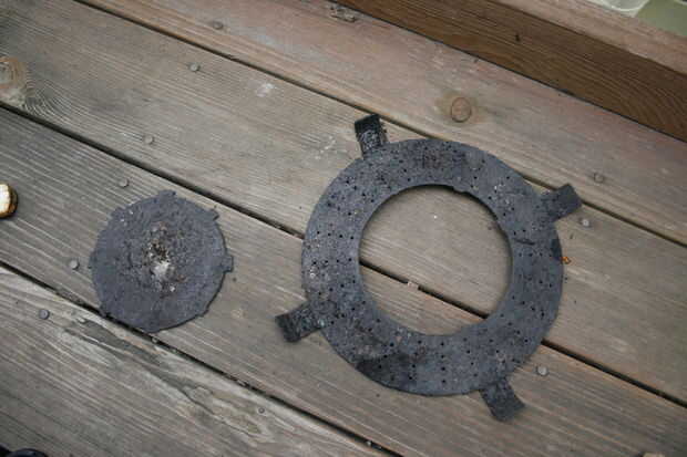 Hay dos piezas de acero que conforman el lugar de la barbacoa: un interno alrededor de la placa y un anillo externo que encaja en la carcasa de la barbacoa. Estos fueron tomados originalmente por ocho pestañas delgadas como una sola pieza, que se desprendió después de apenas dos años de uso moderado.