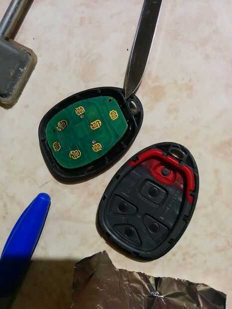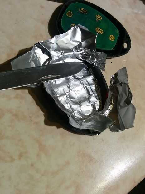 Abrir el control remoto usando un cuchillo y coloque el papel de aluminio dentro de la goma. Corte con cuchillo.