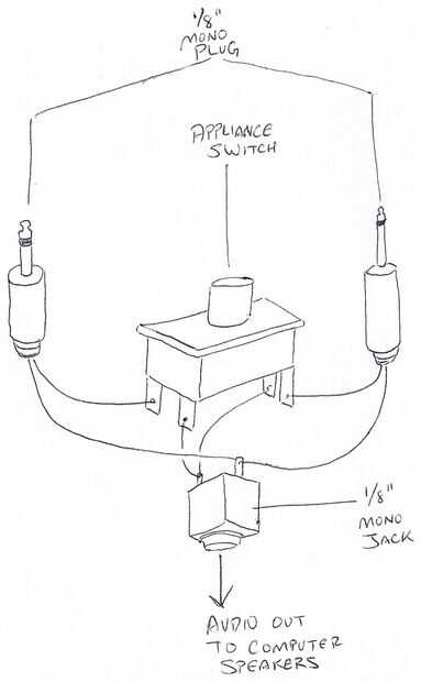 Un detalle muy importante es que necesitas reproductores de mp3 que tocará una canción repetidas veces. Creo que la mayoría de los reproductores mp3 es capaces de esto. He usado IPods, porque es lo tenía disponible y sólo lo necesario para un a corto plazo. Realmente todo lo que hice fue rotura conexión de la salida del reproductor de mp3 con el interruptor. Cuando el interruptor se cierra la conexión para la salida de sonido de mp3 player se cierra y oyes ese sonido mientras se corta la conexión para el otro mp3. Cuando el interruptor está abierto, sucede lo contrario y oír el audio de otro reproductor de mp3.