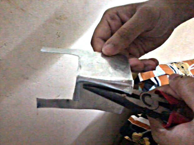 Para doblar hoja GI, puede Utilice pinzas o mantener la hoja en una estructura de tinte y golpear con martillo.