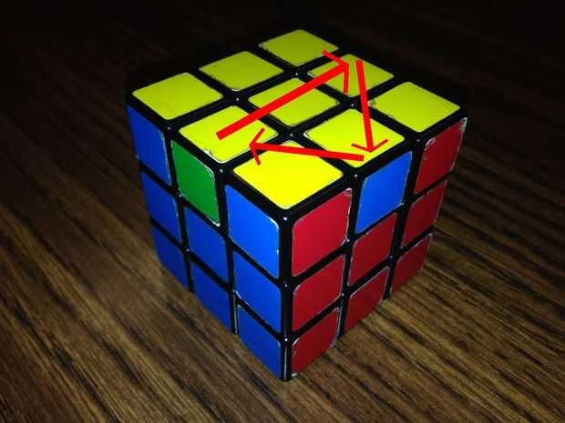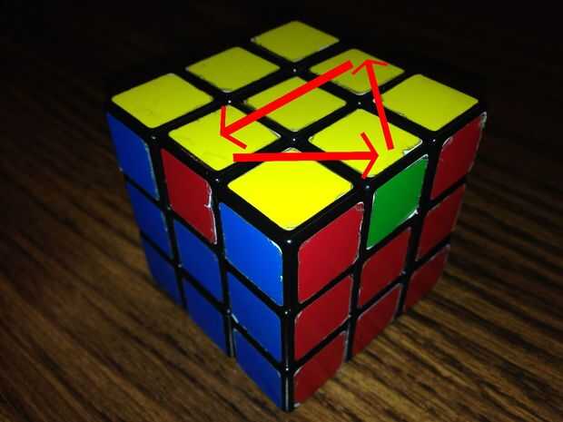 Ahora su lado amarillo debe resolverse completamente. Las únicas piezas que necesitan ser resueltos ahora son piezas de borde en la tercera capa. Si hay tres bordes que son incorrectos, se aplica el algoritmo apropiado (8 o 9) totalmente resolver cubo de Rubik. Si los cuatro bordes son incorrectos, aplicar el algoritmo de 8 o 9 para fijar un borde, luego aplica el algoritmo apropiado para arreglar los otros tres.