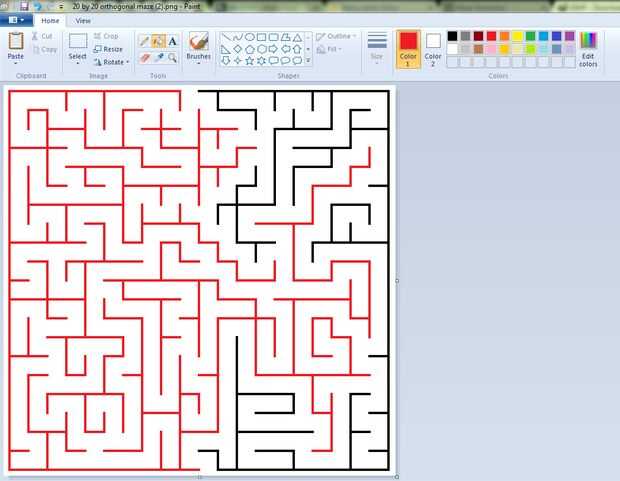 Microsoft Paint puede ser inútil cuando se trata de procesamiento de imágenes pero tiene todas las herramientas necesarias para la resolución de laberintos. Para los pequeños (como la de arriba imágenes) es la mejor opción. Sin preparaciones es necesario alguna - se realizan dos pasos rápidos y.
