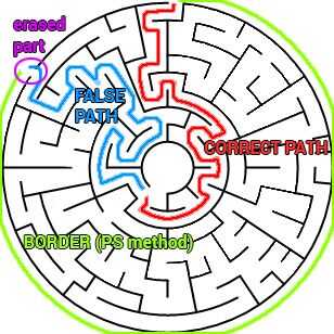 La idea detrás de todas las técnicas en este Ible provienen de esto: cada laberinto es otra cosa que dos muros contiguos, cada uno con algunos muertos aliados y vueltas. Las dos paredes no están conectadas (ver imagen de arriba). Más comunes laberintos generados por ordenador seguir este criterio aunque puedo haber mentí cuando dije que usted será capaz de resolver cualquier laberinto. Ahora se saben resolver cualquier laberinto que comienza y termina fuera del laberinto (aunque tiene múltiples puntos de entrada y salida) mientras se ven obligados a resolver cualquier laberinto que tiene salida y llegada en el centro a mano o por muro de separación en el centro acabado área de mano [imagen 2] (nota que se obtienen dos soluciones que debe ser desechado que pasa por el agujero recién formado - gracias alames). Tenga en cuenta sin embargo, que este método requiere algún ensayo y error. En la mayoría de los casos corte pared exterior hace el trabajo pero en algunos casos, usted tendrá que experimentar.