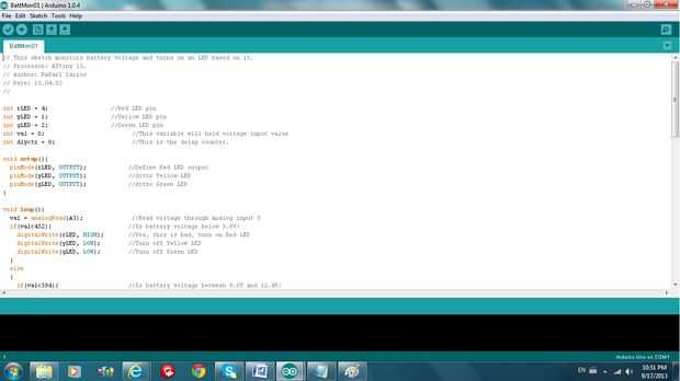 Este bosquejo monitorea el voltaje de la batería y se enciende un LED basado en él.