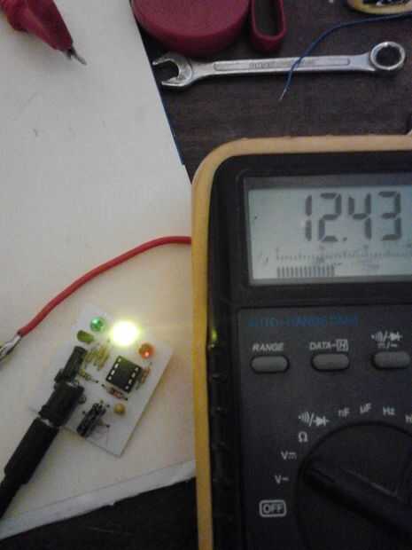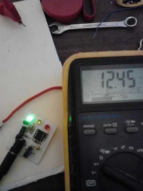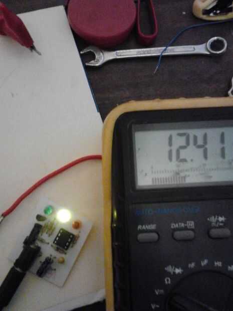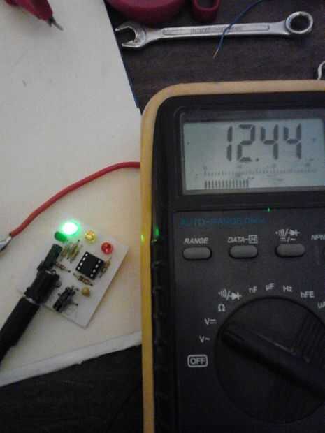 El 9.6V transición ocurrió en 9.65V, una excelente mejora en nuestro intento anterior. La diferencia es sólo el 0,5% en este nivel de tensión que cumple con la exactitud de la mayoría de los voltímetros DC. El 12.4V transición ocurrió en 12.44V con una diferencia de 0.3%!!!!