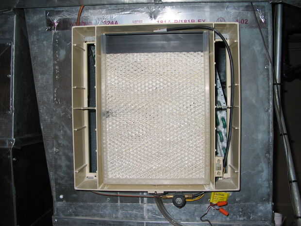 Estas fotos muestran las piezas de principio de un horno montado, humidificador de la casa entera (en este caso un Aprilaire modelo 700):