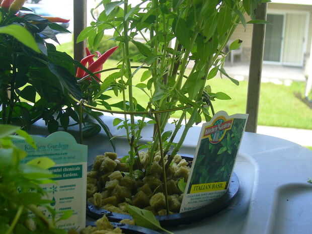 Presioné mis piernas en el orificio superior de mis macetas de malla - así lo acuñar entre el bote y la tapa de plástico (recordemos que es una presión apretada).